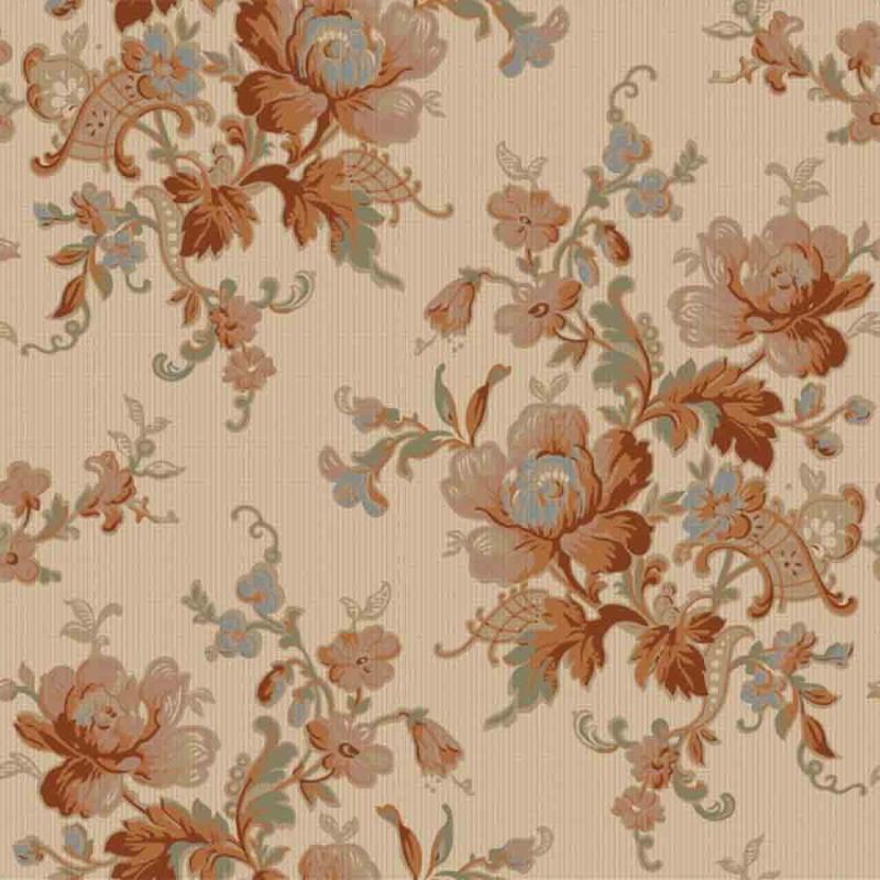 La carta da parati Ingeborg presenta un classico motivo floreale che ricorda un antico ricamo. Grandi corolle stilizzate si intrecciano con foglie sinuose, su una trama a quadretti discretamente visibile. Ogni dettaglio del disegno ricorda i codici decorativi del periodo 1880-1895. Düro iscrive questa creazione in un'estetica senza tempo, tra memoria tessile e dolcezza vegetale.