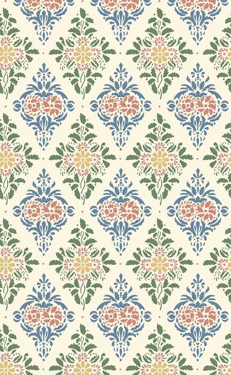 Gastgivars è una carta da parati con motivo damascato stilizzato, direttamente ispirata a una composizione dell'artista svedese Jonas Wallström. Due ornamenti dialogano con finezza: uno organizzato attorno a rosette piene, l'altro scandito da foglie morbide. Il disegno conserva una sensibilità artigianale, percepibile nei suoi contorni irregolari. Qui, Düro dà nuova vita a un patrimonio decorativo che ha attraversato il tempo in silenzio.