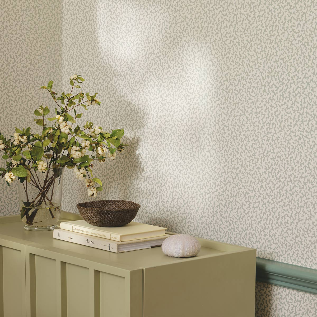 Forme libere, simili a licheni, fioriscono sulla superficie di Junie. Ispirato a un disegno ad acquerello, il motivo vegetale astratto si dispiega con una spontaneità fluida. La sua composizione, irregolare e senza vincoli, evoca la delicatezza di un mondo microscopico. Questa carta da parati riflette la singolare visione organica di Romo.