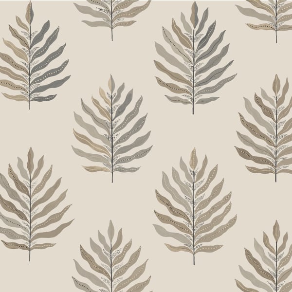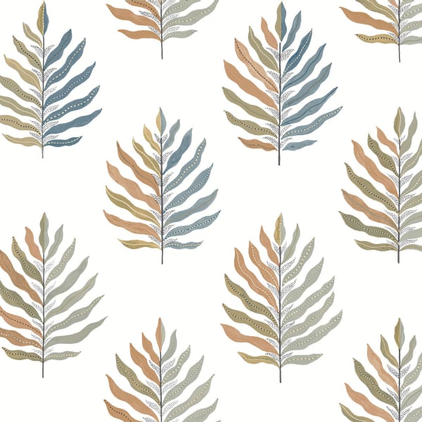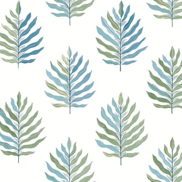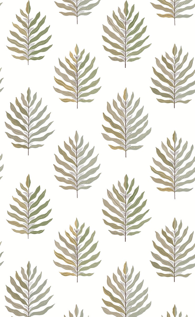 Le foglie stilizzate della carta da parati Miramar si ergono ritmicamente su uno sfondo liscio. Il suo motivo vegetale è composto da grandi fronde dai contorni ondulati, disposte secondo un ritmo regolare. Ogni elemento è organizzato attorno a un fusto centrale, da cui partono lobi allungati sottolineati da piccoli pois decorativi. Questa creazione, firmata York Wallcoverings, bilancia semplicità grafica e ricchezza di dettagli.