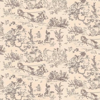 Il motivo della carta da parati Gally, firmata Isidore Leroy, riprende lo spirito di una tela di Jouy e dispiega scene di vita ispirate al XVIII secolo. Personaggi in costumi d'epoca, cavalieri, musicisti e animali si integrano in una composizione ricca e narrativa. Il disegno, realizzato con una tecnica di incisione, rivela la finezza della linea monocromatica.