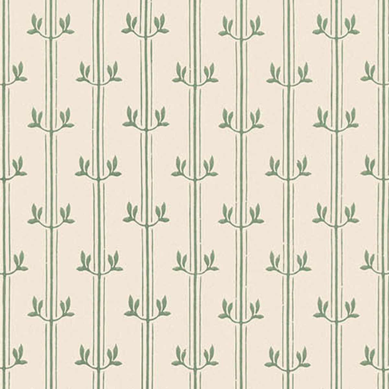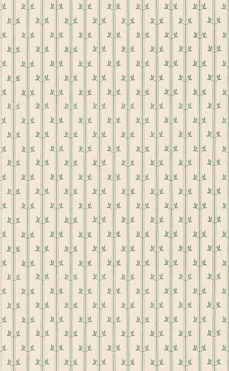 Rayure Aurèle è una carta da parati con linee verticali punteggiate da un motivo vegetale essenziale. Piccole foglie disposte simmetricamente evocano giovani germogli o ramoscelli di verbena. Il disegno si ispira allo spirito grafico dell'Art Nouveau. Isidore Leroy crea questo motivo in un equilibrio misurato tra ornamento e semplicità.