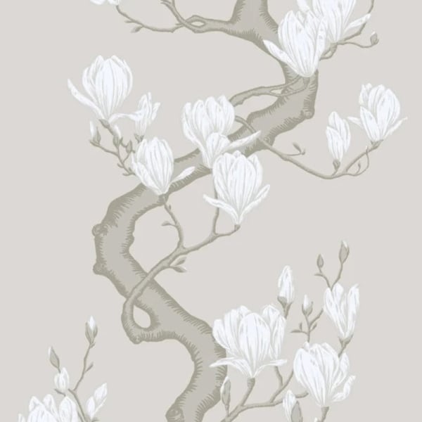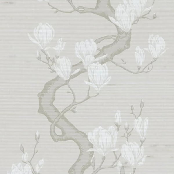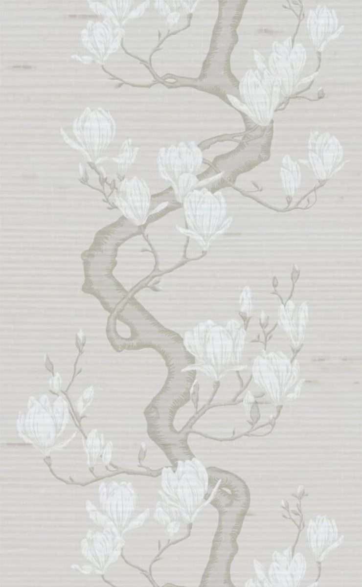 La carta da parati Magnolia Tree Silk presenta un motivo floreale ispirato a un'opera d'archivio, ridipinta a mano. Su uno sfondo finemente strutturato che ricorda la seta, si dispiegano rami sinuosi e fiori in fiore. L'insieme disegna un ritmo verticale che anima la superficie con discrezione. Cole and Son propone una composizione in cui i dettagli grafici incontrano l'eleganza naturale del supporto.