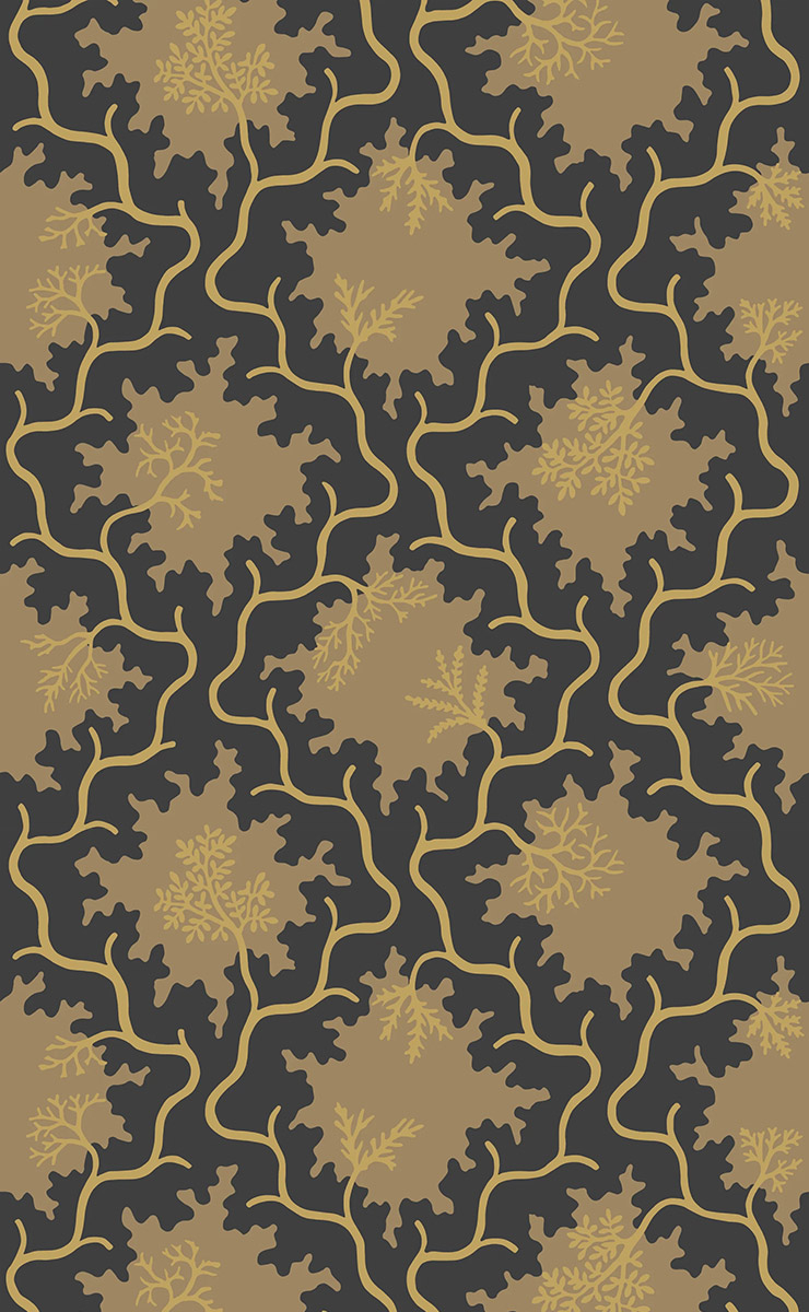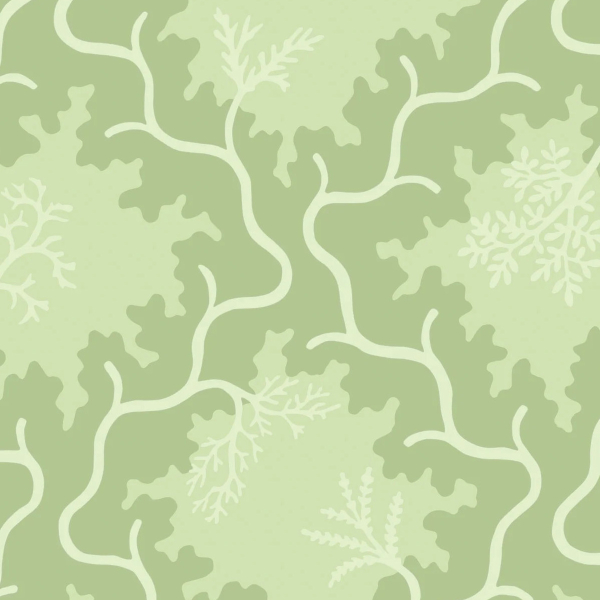 Firmata Cole & Son, la carta da parati Moss Trellis sviluppa un ampio motivo organico, immaginato negli anni Trenta. Forme vegetali stilizzate si intrecciano con regolarità in una struttura sinuosa, evocando sia la natura che l'ornamento. Il tracciato, disegnato con cura, riflette una ricerca di ritmo e movimento. Disposto in modo simmetrico, ogni dettaglio rivela una precisione controllata.