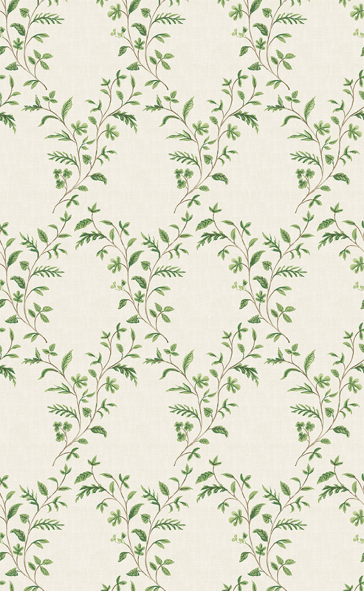Hollingbourne Trellis è una carta da parati con motivo a traliccio vegetale ideata da Nina Campbell. Steli sottili si ergono in delicati arabeschi in una composizione ritmica e fluida. Punteggiati da foglie dal tracciato vario, i rami si disegnano liberamente e formano linee verticali flessibili. Ogni elemento si bilancia con grazia in una rete aerea che ricorda un giardino rampicante stilizzato.