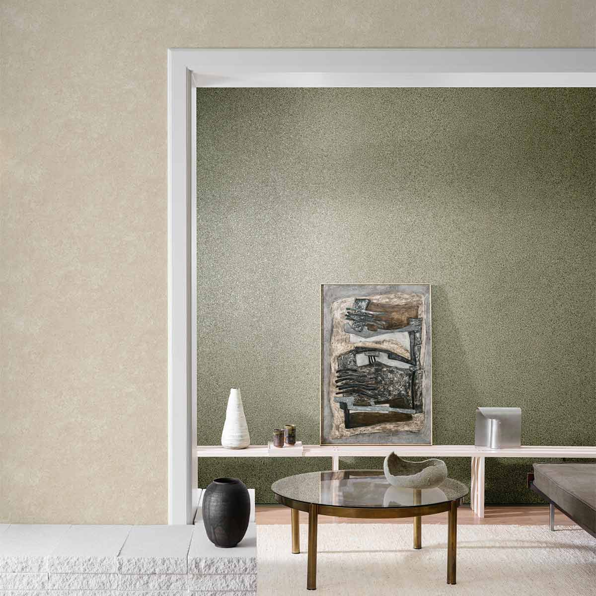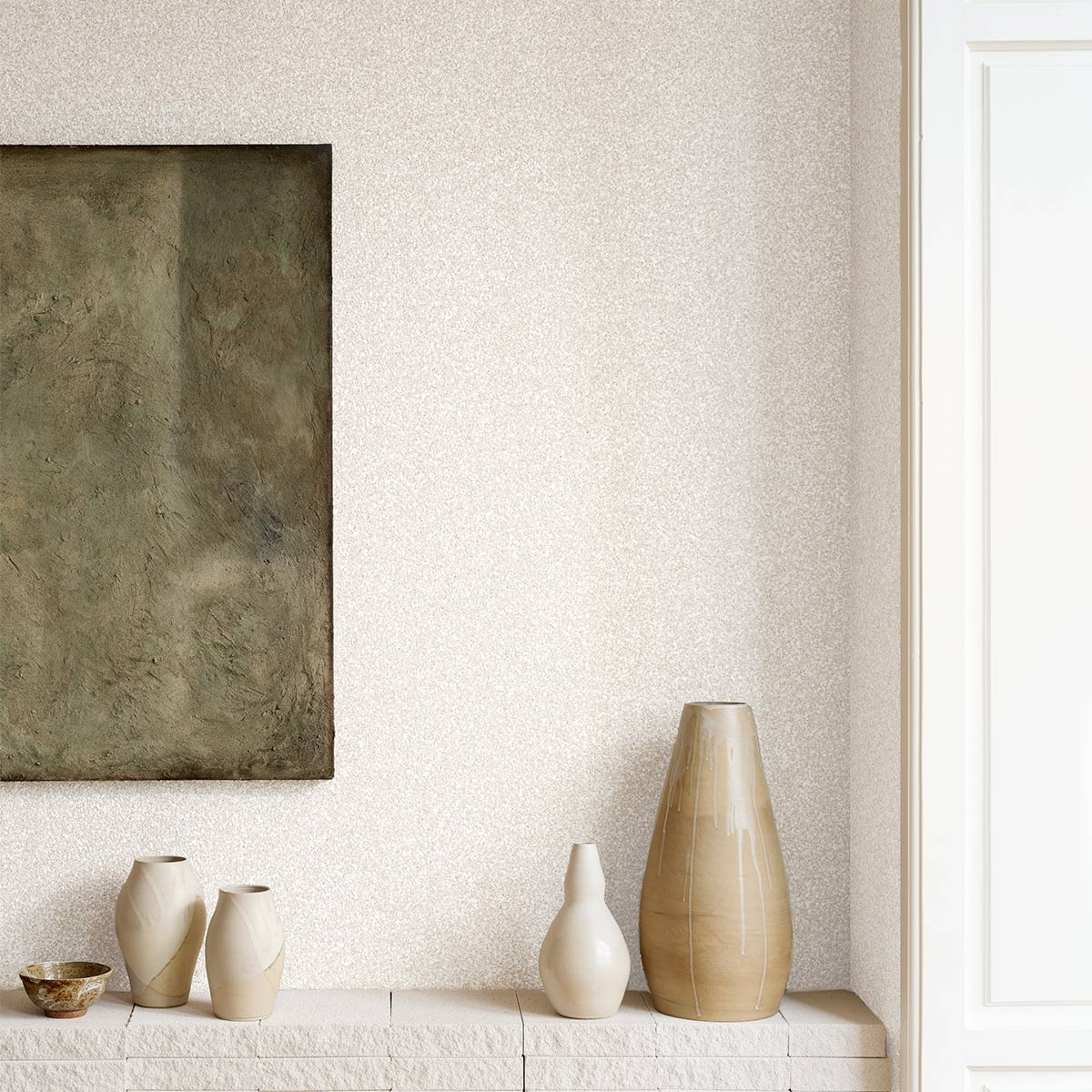 Sotto la luce, Grezzo cattura l'attenzione con la densità grezza del suo motivo minerale, sottolineato da veri frammenti di basalto. Ogni particella sembra ancorata nella materia, come se fosse congelata in una roccia fusa. Questo rivestimento murale di Arte evoca un materiale plasmato dal tempo, granuloso, irregolare, quasi vulcanico.