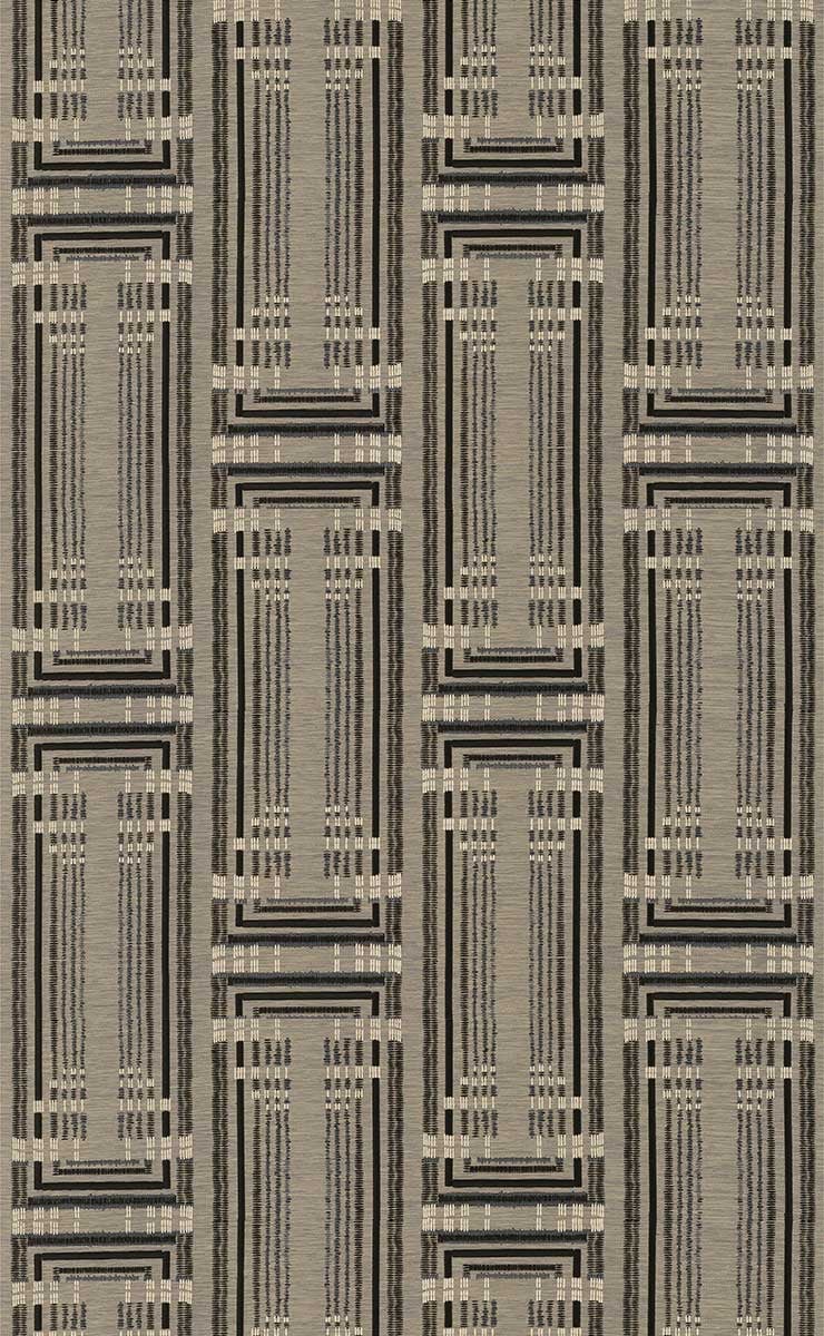Il rivestimento murale Montana presenta un motivo geometrico con forme rettangolari incorniciate da linee parallele. La superficie in tessuto jacquard è lavorata con ricami e applicazioni in velluto che creano un contrasto di texture. Ispirata all'architettura modernista, questa decorazione firmata Arte mette in risalto la precisione del disegno e la raffinatezza tessile.