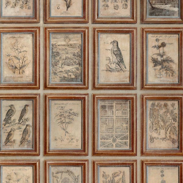 Journal è una carta da parati con un motivo trompe-l'œil di incisioni antiche, edita da Andrew Martin. Cornici finemente tracciate racchiudono illustrazioni di piante rare, animali o scene campestri. L'insieme compone una galleria immaginaria in cui ogni disegno rivela un frammento di storia. Questo rivestimento riproduce le trame del documento invecchiato e del legno antico.