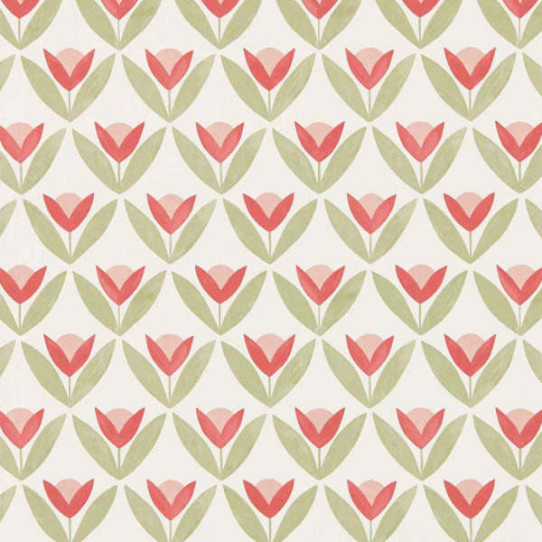 La carta da parati Tulip Trellis sfoggia una partitura floreale in cui ogni tulipano sembra sbocciare al ritmo di una geometria ben ordinata. Allineati con precisione, i fiori si ergono tra due foglie, formando un motivo ripetitivo strutturato. Il disegno adotta uno stile naif, con un effetto leggermente acquerellato che ammorbidisce la composizione. Questa decorazione murale, firmata Scion, si distingue per la semplicità controllata delle sue forme.