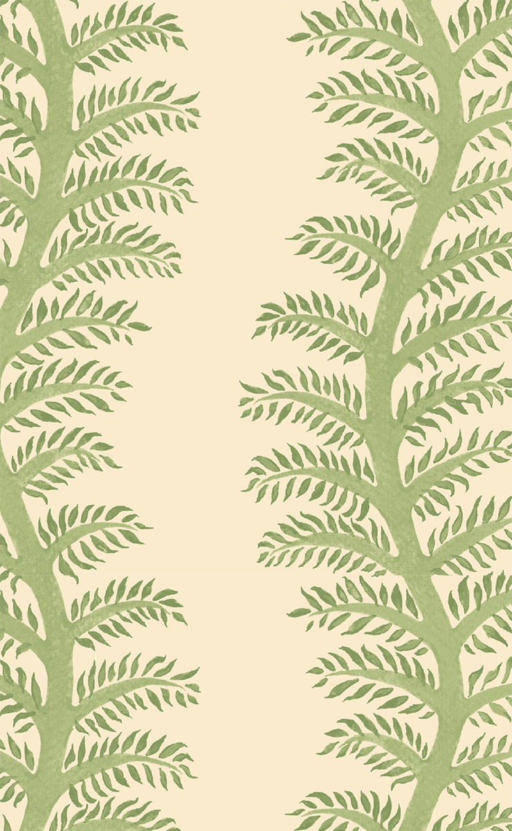La carta da parati Tetbury Stripe presenta un motivo vegetale dall'aspetto scultoreo. Rami slanciati si ergono in colonne regolari, ornati da foglie sottili e allungate. La natura ordinata e ripetitiva scandisce lo spazio con sottigliezza. Firmata da GP & J Baker, questa carta da parati presenta una composizione vegetale dal disegno netto e deciso.