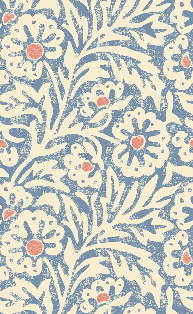 Un motivo floreale stilizzato, ispirato a una tecnica a stampo, si estende sulla carta da parati Flower Patch. Grandi petali arrotondati si dispiegano tra un fitto fogliame, in una composizione volutamente irregolare. Le forme attraversano uno sfondo strutturato dal fascino retrò. Firmato GP & J Baker, questo rivestimento esprime un antico linguaggio ornamentale, al contempo grezzo e delicato.