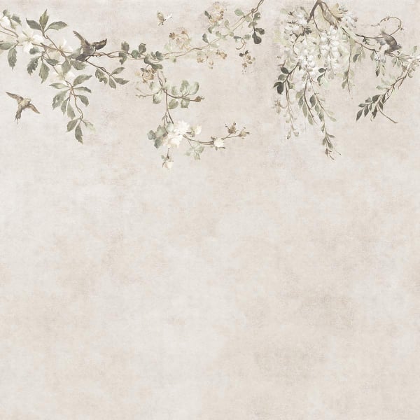 Nico è una carta da parati panoramica che evoca un fregio vegetale sospeso nell'aria. Steli flessibili si arrampicano come liane, carichi di foglie e fiori stilizzati, punteggiati da piccoli uccelli. Il motivo figurativo dispiega sagome aeree dai contorni sottili che ricordano una primavera nascente. Sandberg propone un decoro che infonde alla parete una sensazione di calma e freschezza.