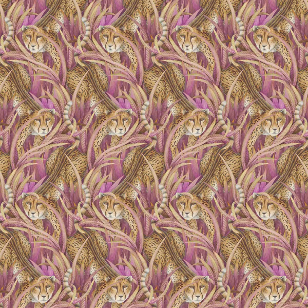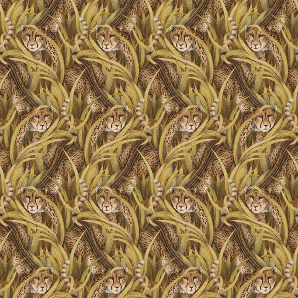 I ghepardi appaiono nel fitto fogliame della carta da parati Cheetah Prowl, una creazione di Cole and Son. Il motivo animalier illustra il loro movimento silenzioso attraverso una giungla stilizzata, dove ogni foglia si allunga in un gesto fluido. L'insieme gioca sulla profondità e sul ritmo, tracciando un universo vivente. Il disegno naturalistico rivela la grazia dei felini e la ricchezza dell'arredamento.