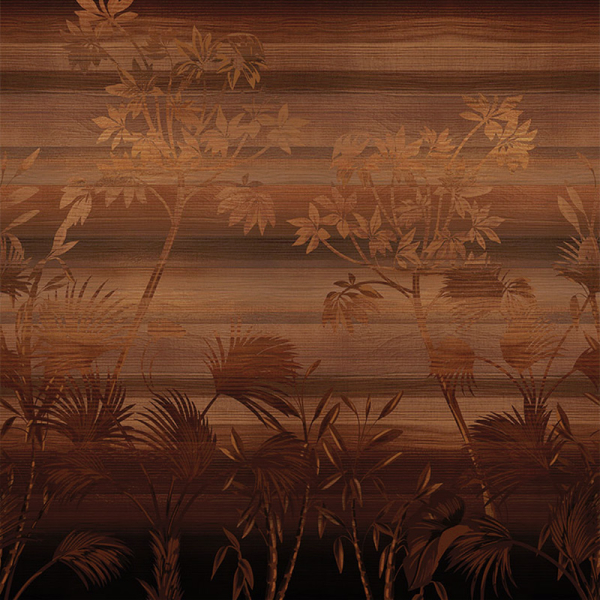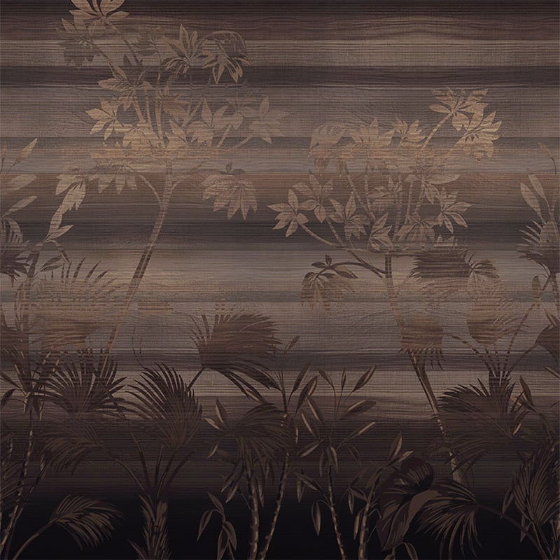 La carta da parati panoramica Emberwood Symphony rivela una vegetazione esotica, con sagome di alberi che evocano una foresta al crepuscolo. La trama goffrata irregolare e le linee orizzontali disegnano un materiale denso dalle sfumature profonde. Ogni dettaglio svanisce nella nebbia, come se fosse assorbito dalla luce. Questa composizione avvolgente di Londonart suggerisce l'immobilità di un paesaggio segreto.