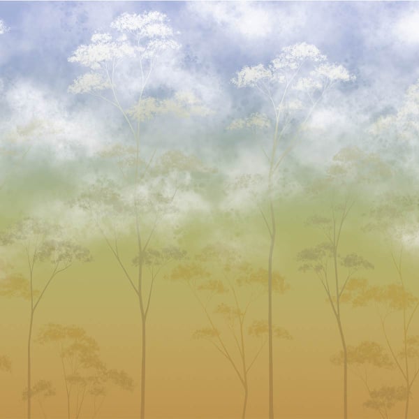 La carta da parati panoramica Mugen evoca un paesaggio sospeso, dove sottili sagome vegetali si stagliano su uno sfondo nebbioso. Firmato K3 design by Kenzo Takada, il motivo botanico si eleva in un'atmosfera silenziosa e diffusa. Un delicato effetto scintillante arricchisce questa composizione poetica dalle sfumature sfocate. La scena si impone come un soffio calmo e contemplativo sulle pareti.
