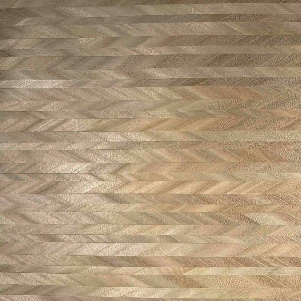 La carta da parati Natural Wood rivela un motivo a spina di pesce allungato, ritmato e luminoso, composto da impiallacciature in vero legno. La superficie vibra sottilmente, come animata dalla grana naturale e dal rilievo organico del materiale. Questo disegno strutturato evoca la calma e la profondità di un materiale vivo. K3 design by Kenzo Takada infonde qui una visione sensoriale e tattile dell'arredamento.