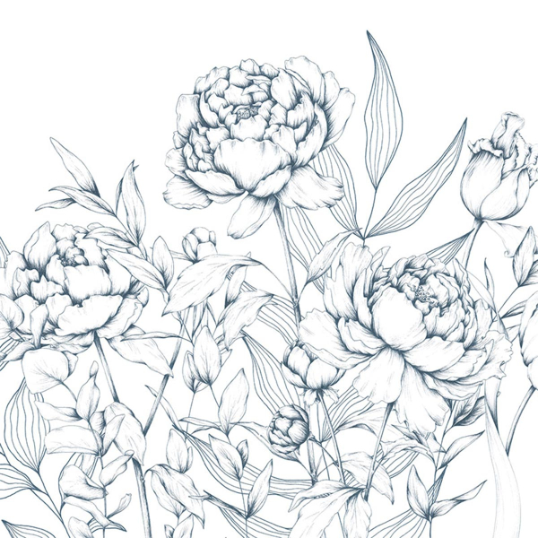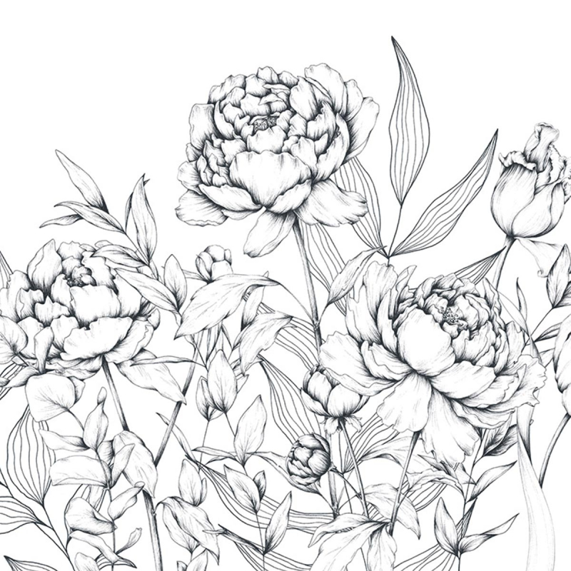 La carta da parati panoramica Caresse de Pivoines rivela una composizione floreale intrisa di dolcezza. Grandi peonie dal tratto minuzioso si ergono tra un fogliame leggero, nello spirito di una tavola botanica. Ogni linea evoca la delicatezza di un disegno a matita. Firmato Acte Deco, il motivo vegetale si dispiega in silenzio, come sospeso nel tempo.