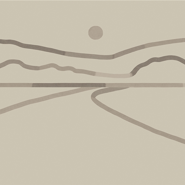 La carta da parati panoramica Horizon presenta un motivo geometrico astratto, strutturato da linee pulite. Evoca un paesaggio stilizzato, dove l'orizzonte si dispiega sotto un tramonto. La composizione dal tono minimalista suggerisce un sentiero che sfugge verso le colline. Questa decorazione murale firmata Acte Déco coltiva una sensazione di calma e profondità.