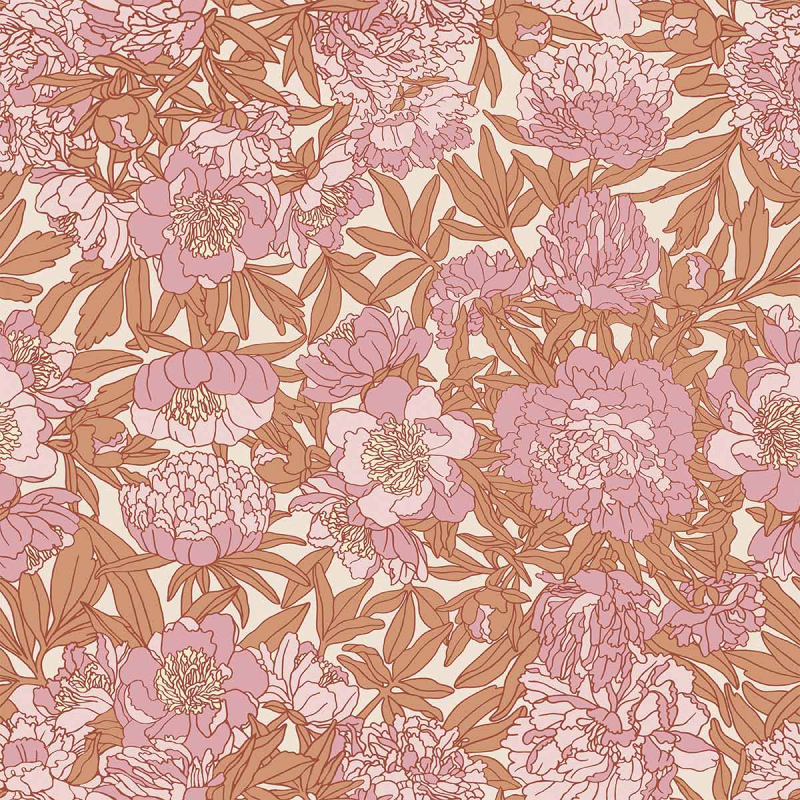 La carta da parati panoramica Peony fever di Duro presenta un vasto disegno di peonie, ispirato alle stampe tradizionali. Questo decoro dispiega fiori scultorei e foglie intrecciate che evocano poesia e movimento. Il motivo ampio infonde un'atmosfera ricca e avvolgente sulle pareti. Ogni dettaglio vibra al ritmo di un giardino in piena fioritura.