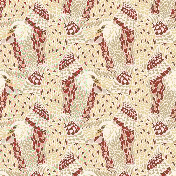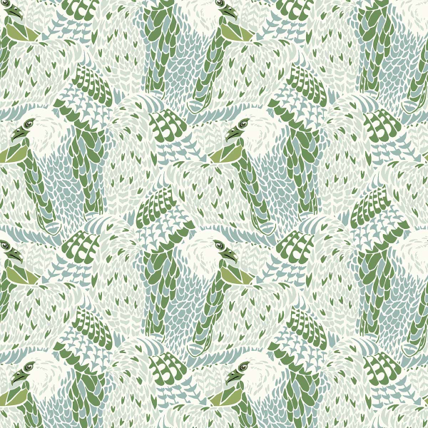 La carta da parati Eagle Eye Chéri di Little Cabari celebra la nobiltà dell'aquila attraverso una composizione alata di grande precisione. Il motivo grafico, tutto densità e movimento, delinea sagome intrecciate in una coreografia ritmata. Ogni tratto sembra sospeso nell'aria. L'insieme diffonde una presenza aerea, contemporanea e piena di carattere.