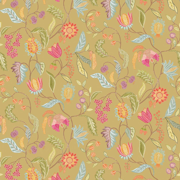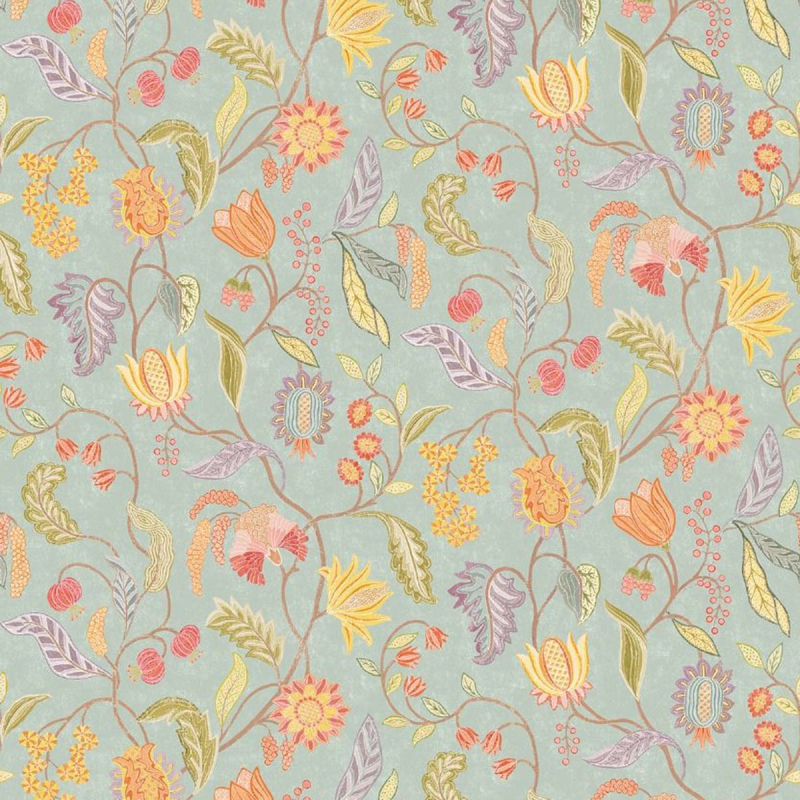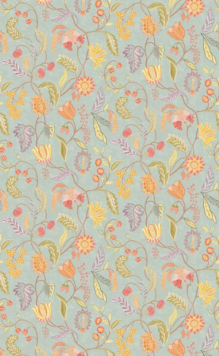 Osborne & Little dispiega un mondo rigoglioso con la carta da parati Masino. Un intreccio di steli sinuosi disegna un albero della vita con rami fitti, popolato da fiori stilizzati e fogliame ondulato. Le corolle sono disponibili in forme piene o sbocciate, a volte rotonde, a volte affusolate, evocando un giardino pensile. Il tutto compone un affresco organico di grande delicatezza.