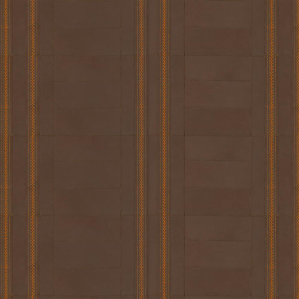 Con la carta da parati Gambison, Arte rende un omaggio tangibile all’abbigliamento medievale. Ogni rettangolo, pazientemente cucito a mano in pelle satinata, compone un motivo geometrico strutturato e flessibile. Il tracciato dei ricami, finemente eseguito, prolunga con rigore il gesto artigianale. Questa superficie evoca il farsetto trapuntato che i cavalieri indossavano sotto l'armatura, a metà tra protezione e raffinatezza.