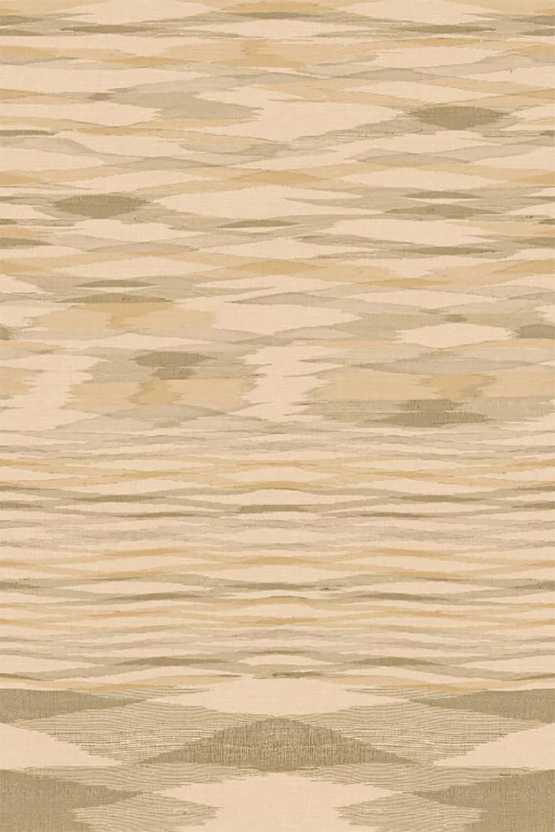 Kashmir è una carta da parati firmata Arte, il cui disegno evoca la trama cangiante di uno scialle antico. Il motivo geometrico si sviluppa in linee irregolari, a volte ondulate, a volte allungate, e suggerisce sottili rombi in movimento. La superficie imita l’aspetto di un lino finemente intessuto e prolunga la sensazione di un tessuto patinato dal tempo. Ogni frammento sembra attraversato da una memoria tessile.