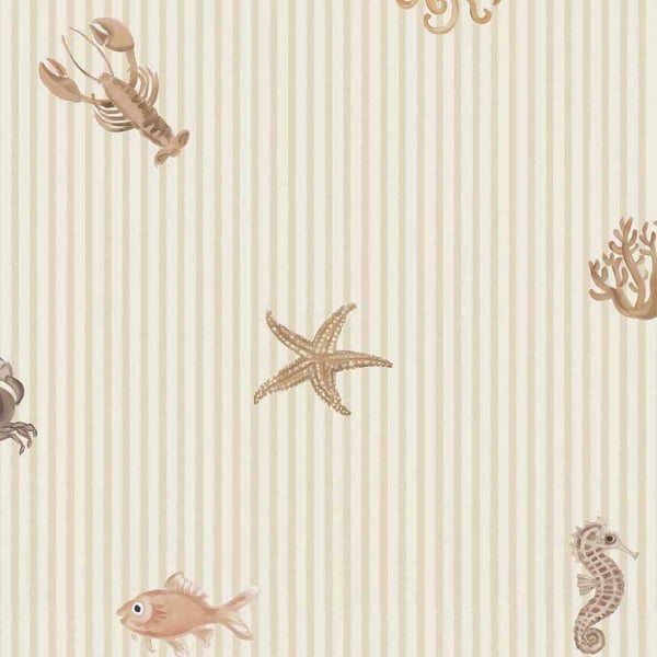 La carta da parati Seaside sfoggia un motivo geometrico e figurativo in cui strisce sottili strutturano la superficie con regolarità. Su questo sfondo ritmato compaiono animali acquatici disegnati con delicatezza. Pesci, stelle marine, cavallucci marini e conchiglie percorrono la carta da parati. Il tratto preciso anima la composizione e inserisce questa decorazione murale in un immaginario marino ben padroneggiato, ideato da Eijffinger.