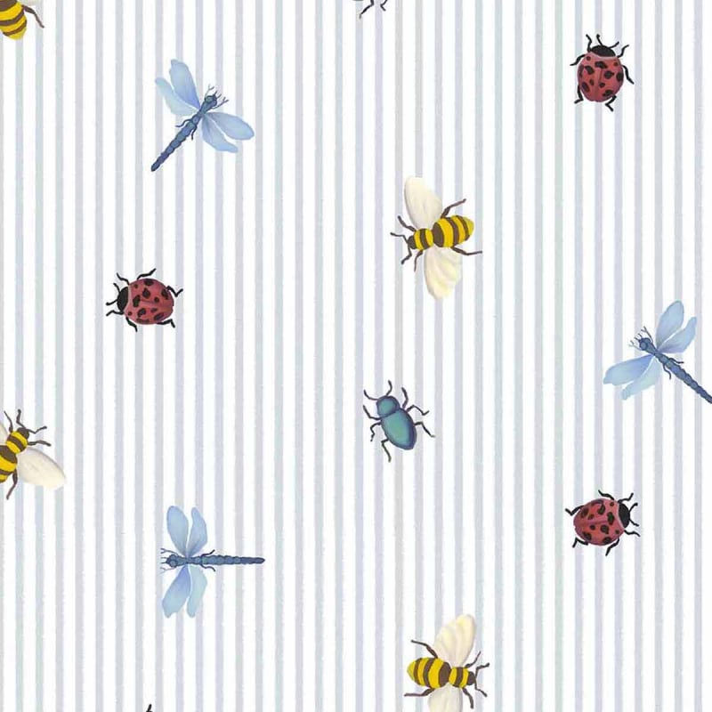 Eijffinger firma la carta da parati Buzz, un motivo figurativo e geometrico in cui sottili strisce verticali strutturano la superficie. Su questo sfondo ritmato si disperdono coccinelle, api e libellule, disegnate con precisione. Ogni insetto anima la composizione e dialoga con il rigore delle linee. Questa carta da parati crea un paesaggio murale vivace e ordinato.