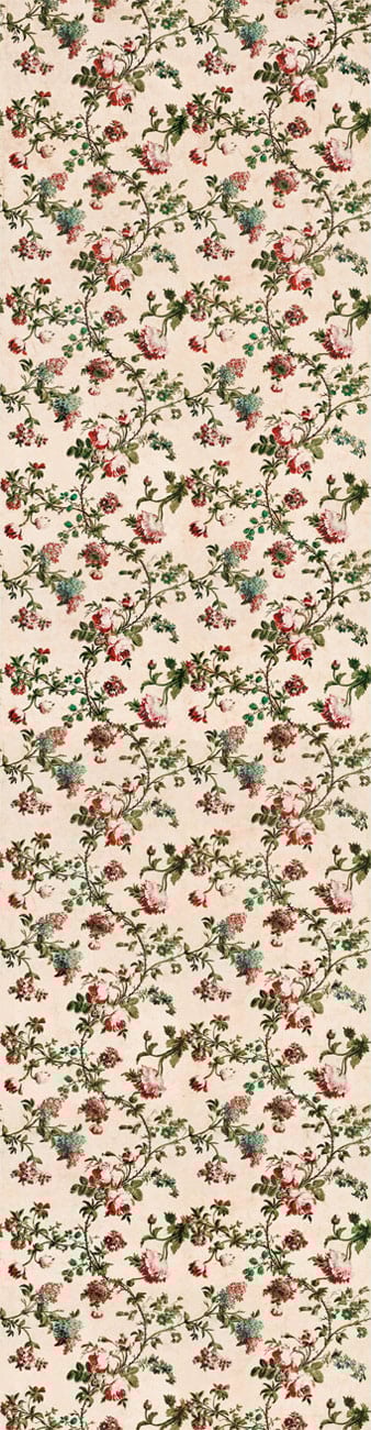 La carta da parati Nouvelle Héloïse di Le Grand Siècle presenta un lussureggiante motivo floreale. Originariamente esposta sulle pareti della camera da letto di Madame de Warens (Maison des Charmettes, Chambéry), mecenate e compagna di Jean-Jacques Rousseau durante i suoi primi anni, rivela un tipico motivo di stampa indiana del XVIII secolo composto da rose, lillà e fiori di campo che sbocciano su uno sfondo semplice. Il disegno evoca un dipinto antico, con ogni stelo che si intreccia con grazia. L'effetto complessivo è una delicata decorazione che punteggia ritmicamente la parete e struttura lo spazio.