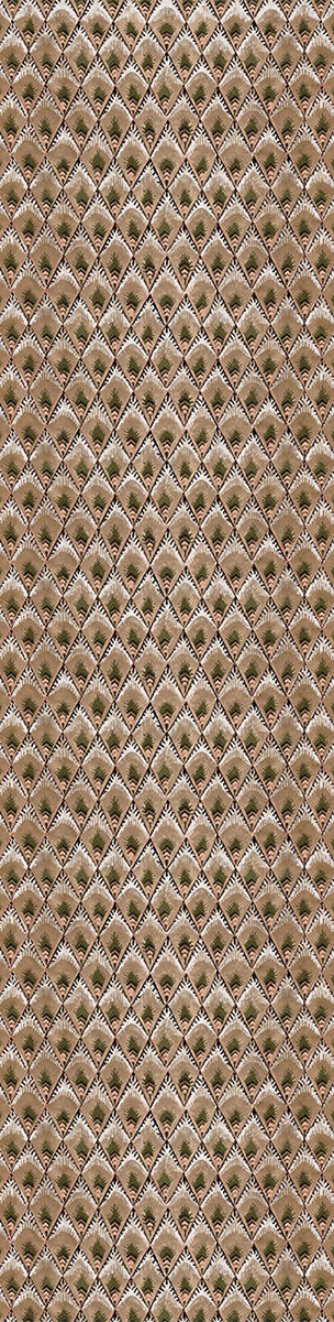 Rombi ritmati da arabeschi a contrasto compongono il motivo geometrico e figurativo della carta da parati Oratoire. Al centro di ogni forma spuntano piccoli pennacchi, disegnati con precisione. La trama regolare struttura la superficie e instaura un dialogo tra ornamento e rigore grafico. Firmata Le Grand Siècle, questa carta da parati esprime una presenza decorativa misurata.