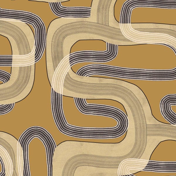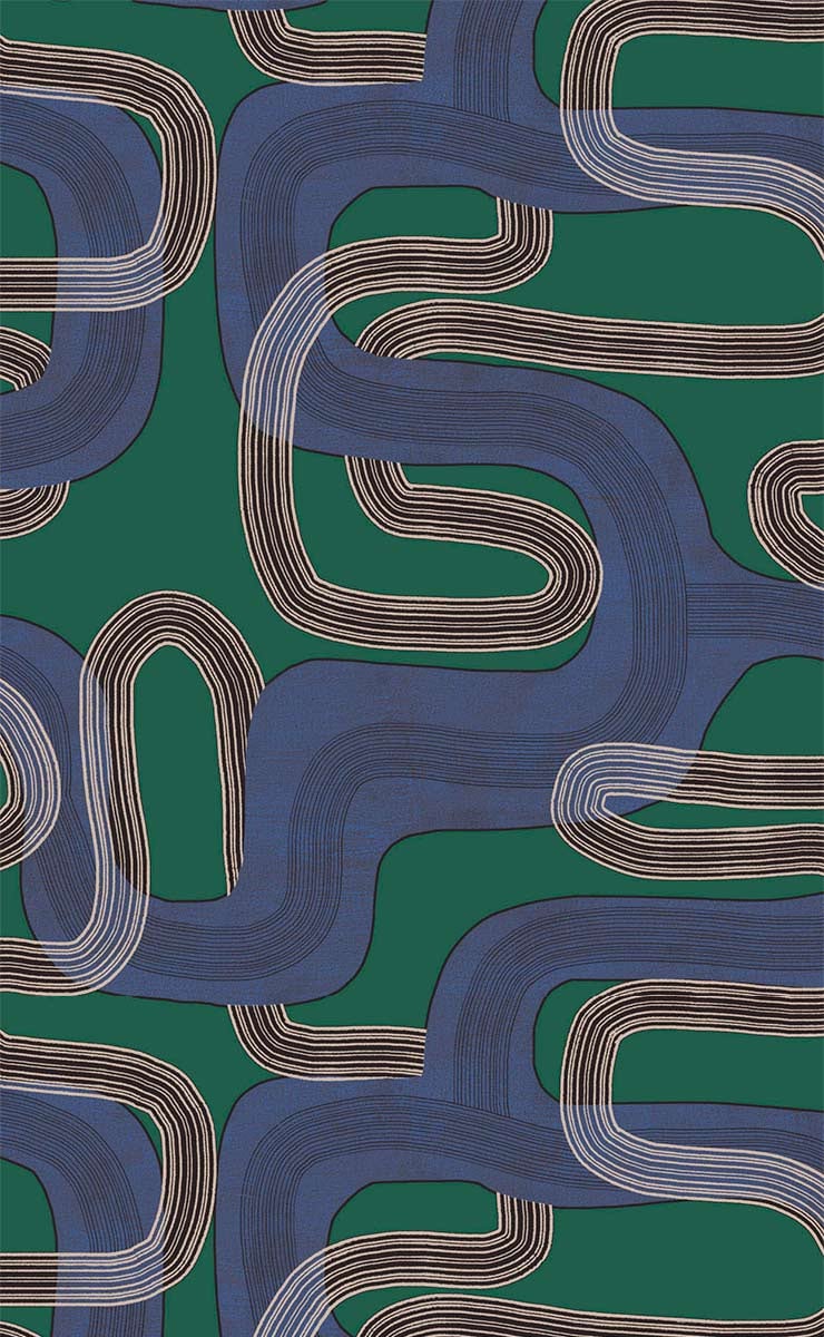 La carta da parati Pipelines di Tres Tintas Barcelona presenta un motivo geometrico in cui linee abbondanti tracciano una rete continua. Le curve spesse e filiformi si intrecciano con precisione e disegnano una circolazione sotterranea. L’insieme evoca una cartografia invisibile, un labirinto organizzato che pulsa sotto la superficie. Questa carta da parati conferisce alla parete una densa dinamica grafica.