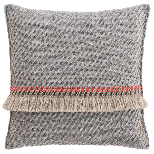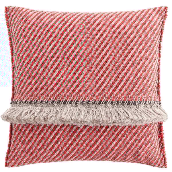 Questo cuscino quadrato trae ispirazione dai viaggi in India della designer spagnola Patricia Urquiola. Tessuto a mano, con frange, reinterpreta il tradizionale know-how di questa regione. Questo cuscino è adatto per l'uso esterno. Diagonal proviene dalla collezione Garden Layers pubblicata da Gan Rugs.