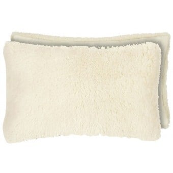 Evocando l'aspetto della pelle di pecora, il lato anteriore del cuscino Mousson ha una consistenza soffice e piacevole al tatto. Offrendo una superficie liscia, il suo retro liscio è tessuto esclusivamente in lino. Questo accessorio dona un'illusione di profondità a qualsiasi spazio abitativo.