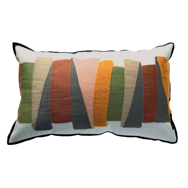 Il cuscino Valvidia aggiunge un tocco grafico all'arredamento con il suo motivo geometrico intriso di spirito artistico. Un'armonia di sfumature argillose si dispiega su un fondo bianco, mutuando dal fondo una trama diversa. I bordi del bordino adottano un colore scuro, e sottolineano lo stile contemporaneo di questo modello rettangolare.