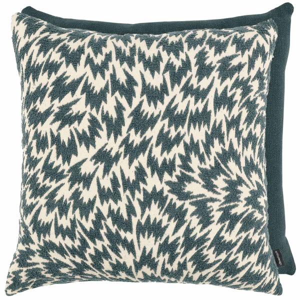Progettato da Eley Kishimoto per Kirkby, Flash si distingue per il suo ipnotizzante motivo di fulmini vorticosi. Le figure, realizzate con lana ritorta su base di cotone, sono tessute con telaio Jacquard. I colori contrastanti danno un aspetto bicolore sulla parte superiore del cuscino, mentre la parte posteriore è in lino lavato a tinta unita.