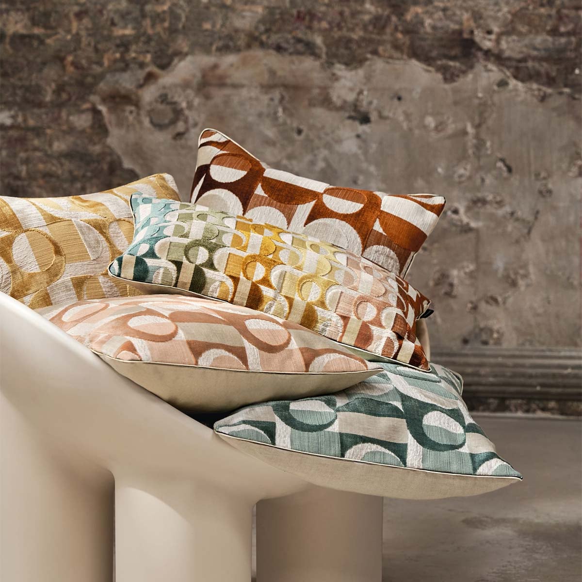 Il cuscino Alliance di Casamance seduce con la sua affascinante modernità e il suo design geometrico. Questo accessorio è caratterizzato dalla sovrapposizione di cerchi e rettangoli in tonalità contrastanti. La superficie strutturata, risultante dal gioco di forme, e i bordi accuratamente cuciti aggiungono un tocco di raffinatezza artigianale.