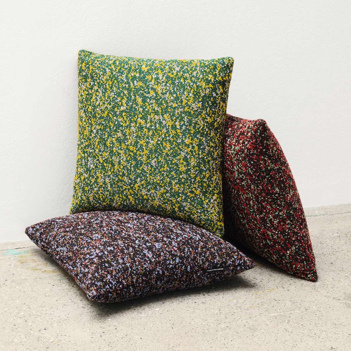 Il cuscino Atom presenta un motivo astratto maculato, progettato a partire da un'opera pittorica trasposta digitalmente. Ogni dettaglio evoca una pioggia di pigmenti multicolori sparsi su uno sfondo uniforme. Questo decoro in lana rivela un tocco profondo e una ricchezza visiva sorprendente. Realizzato da Kvadrat, mette in risalto un disegno dalla composizione vibrante.