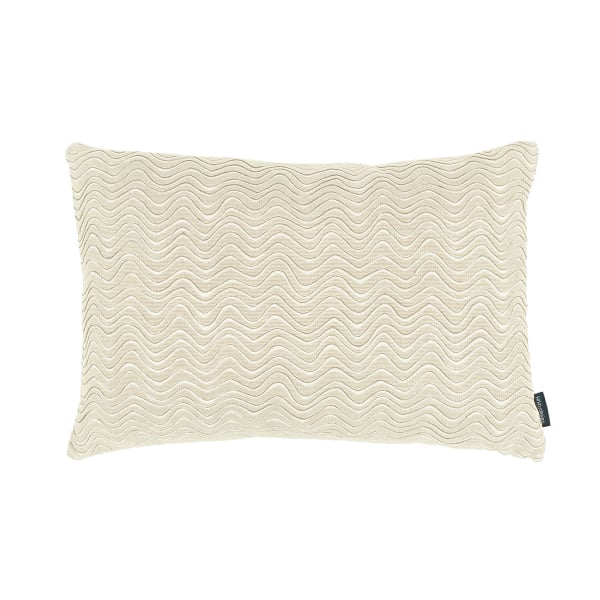 Scroll è un cuscino rettangolare con un motivo geometrico tridimensionale, sobrio e rilassante. In un movimento continuo, le onde percorrono la sua superficie e disegnano una calligrafia ornamentale. Realizzato in cotone biologico al 100%, presenta una trama strutturata e vibrante. Kirkby Design ancora questa composizione in un materiale naturale dal tocco delicato.