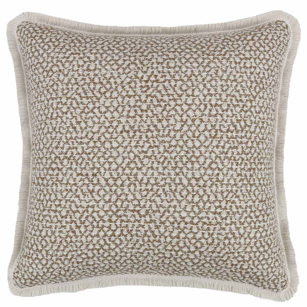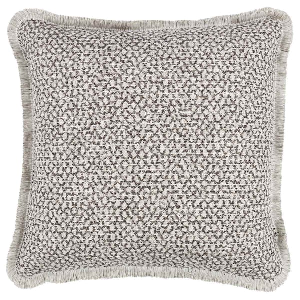Come un mosaico organico, la superficie del cuscino Ria dispiega piccole forme irregolari in rilievo. Elementi grafici, disposti in modo ripetitivo, creano il motivo geometrico con una trama visiva ritmata. Le frange bordate aggiungono un dettaglio sottile che prolunga l'aspetto scritturale. Tessuto in jacquard, questo decoro firmato Villa Nova rivela una trama ricca e sfumata.