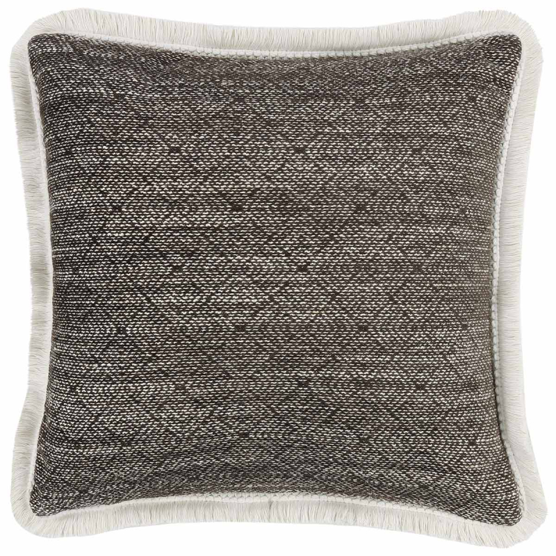 Akalu è un cuscino con un delicato motivo geometrico, ispirato a una scacchiera dalle linee finemente strutturate. La tessitura jacquard crea una trama raffinata, caratterizzata da un gioco di rilievi discreti. Una frangia incornicia delicatamente il contorno. Villa Nova privilegia qui il rigore del disegno e la ricchezza dei materiali lavorati.
