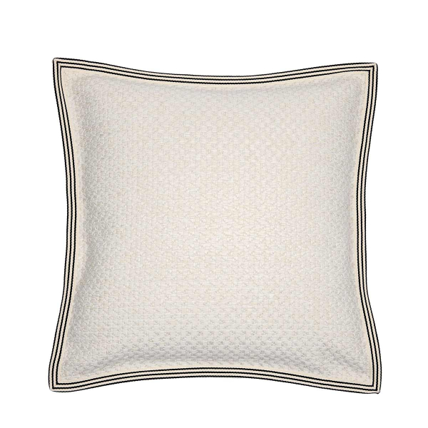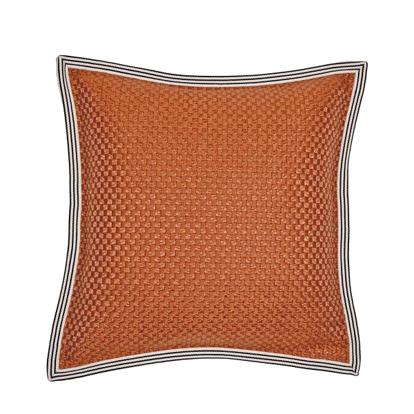 La Maison Casamance presenta Rico Ruivo, un cuscino dal motivo geometrico strutturato da quadri intrecciati. La sottile alternanza dei quadratini in rilievo crea un ritmo grafico continuo. Il materiale rivela una texture marcata che anima la superficie con un leggero movimento tattile. Una finitura bordata a righe incornicia l'insieme e sottolinea le sue linee decise.