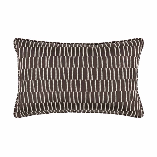 Zinc immagina il cuscino rettangolare Polanco come una superficie vibrante, animata da un motivo geometrico di linee irregolari, a volte ravvicinate, a volte distanziate. Questo disegno libero introduce un’asimmetria controllata, quasi istintiva. La trama jacquard, dalla finezza liscia, cattura la luce con una luminosità misurata. Il materiale conserva un tocco rustico, discreto, ma percepibile alla vista.