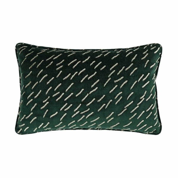 Zinc immagina il cuscino Siam come un gioco di tracce abbozzate, sparse in un ritmo irregolare. Il velluto scuro accoglie un motivo geometrico discreto, in cui un filo di ciniglia disegna segni diagonali, quasi infantili. La superficie si solleva dolcemente sotto le dita, densa e soffice. Ogni dettaglio rivela un contrasto ben calibrato tra raffinatezza tessile e semplicità formale.