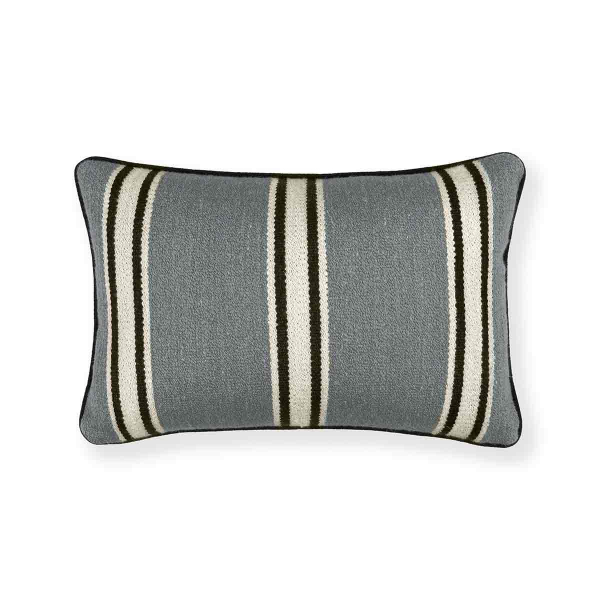 Realizzato da Romo, il cuscino Omba si fa notare per le sue strisce decise, intrecciate in ampie fasce regolari. Le linee sobrie e il ritmo visivo emanano un’eleganza rustica, ma contenuta. Il lino e la lana si mescolano per creare una texture morbida e asciutta al tatto. Un discreto bordino ne sottolinea i contorni, esaltando l'espressione tessile di un savoir-faire artigianale.