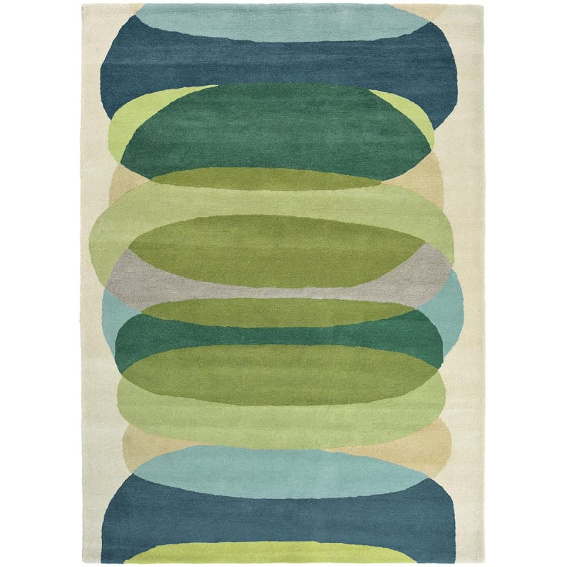 Il tappeto Elliptic, realizzato a mano, copre il pavimento con un vortice ipnotico, nato dalla sovrapposizione di ovali. La combinazione di sfumature morbide, intense e rinfrescanti dà vita a un'illusione di profondità sorprendente. Questa creazione in lana vergine della casa Harlequin completa l'arredamento con un tocco contemporaneo.