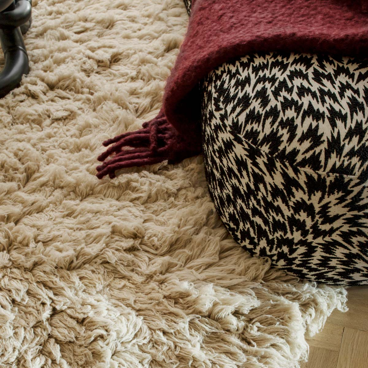 Con Residue Shaggy, l'interno è ricoperto da uno strato di morbidezza. Questo tappeto a pelo lungo coccola la pelle con le sue fibre di lana e illumina l'arredamento con la sua lucentezza. La sua consistenza simile alla pelliccia è il risultato della combinazione tra la tessitura manuale e l'antica sapienza greca. La sua forma organica completa il tutto con una certa raffinatezza.