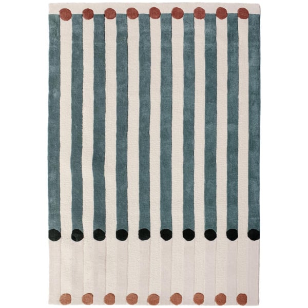 Il tappeto Dott rivela un motivo geometrico scandito da strisce verticali leggermente ondulate e punteggiate da cerchi a contrasto. Questo pezzo morbido al tatto nasce dalla danza delle fibre di lana neozelandese sapientemente orchestrata dalle mani di abili artigiani. Edito firma qui un pezzo dal design strutturato, che unisce equilibrio e modernità.