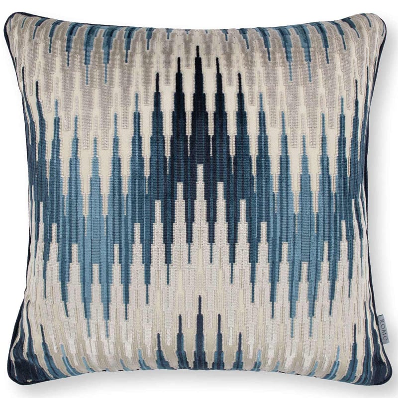 Il cuscino Quintero di Romo si distingue per il suo grande motivo a spina di pesce. Le tonalità prese in prestito rafforzano l'illusione creata dal suo design moderno. Il lato in velluto di questo modello mostra un gioco di contrasti tra colori complementari. Il retro in tinta unita è realizzato in misto lino che gli conferisce un tocco morbido.
