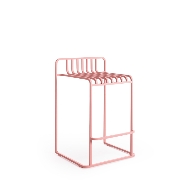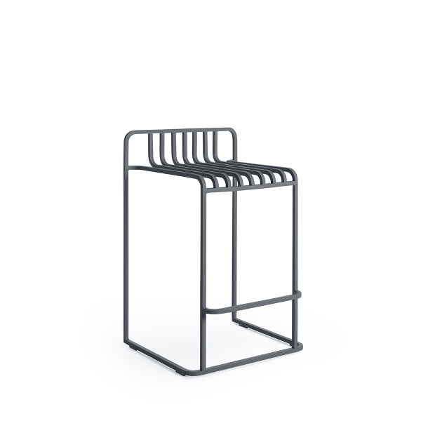 La sedia alta Grill è una sedia con un motivo grafico ispirato alle barre metalliche. Ogni asta in alluminio disegna un ritmo visivo regolare e crea una silhouette di grande leggerezza. Progettato per l'esterno da Diabla, questo modello si basa su una struttura resistente. Afferma una presenza scultorea netta ed esprime un equilibrio controllato tra rigore ed estetica.